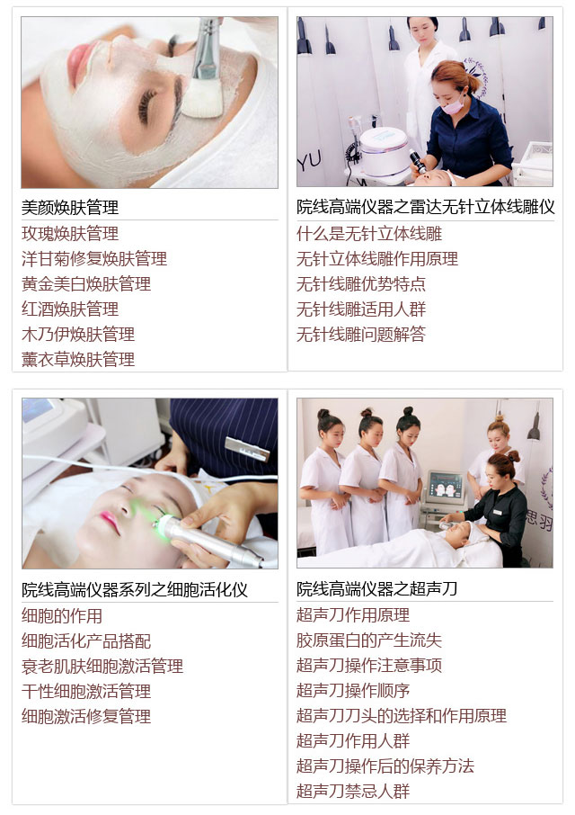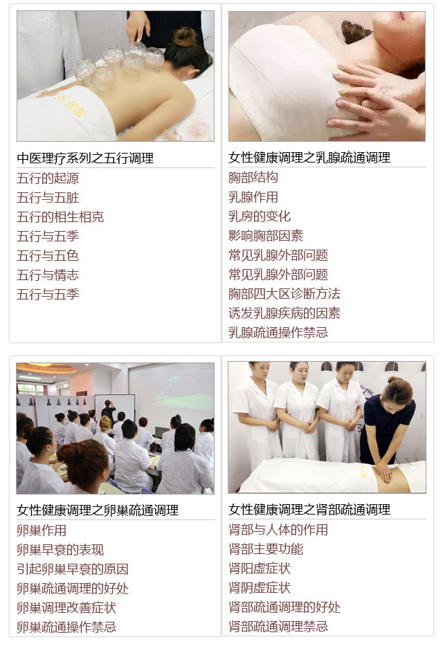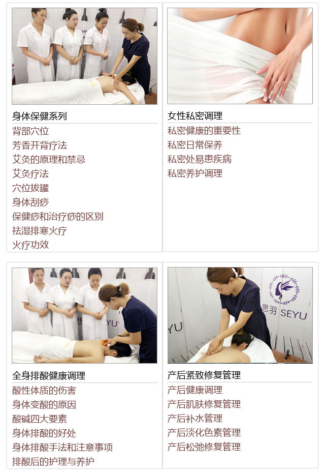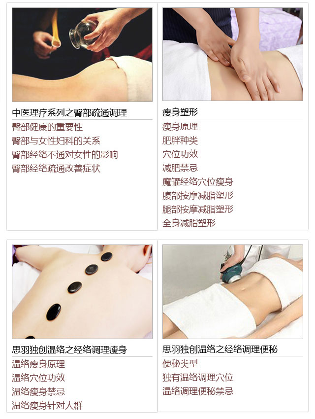 思羽学院下设5大类课程,美容类:中医美容全科班、中医美容美体经络理疗全...